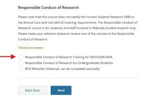Next, choose “Responsible Conduct of Research Training for NSF/USDA-NIFA.”